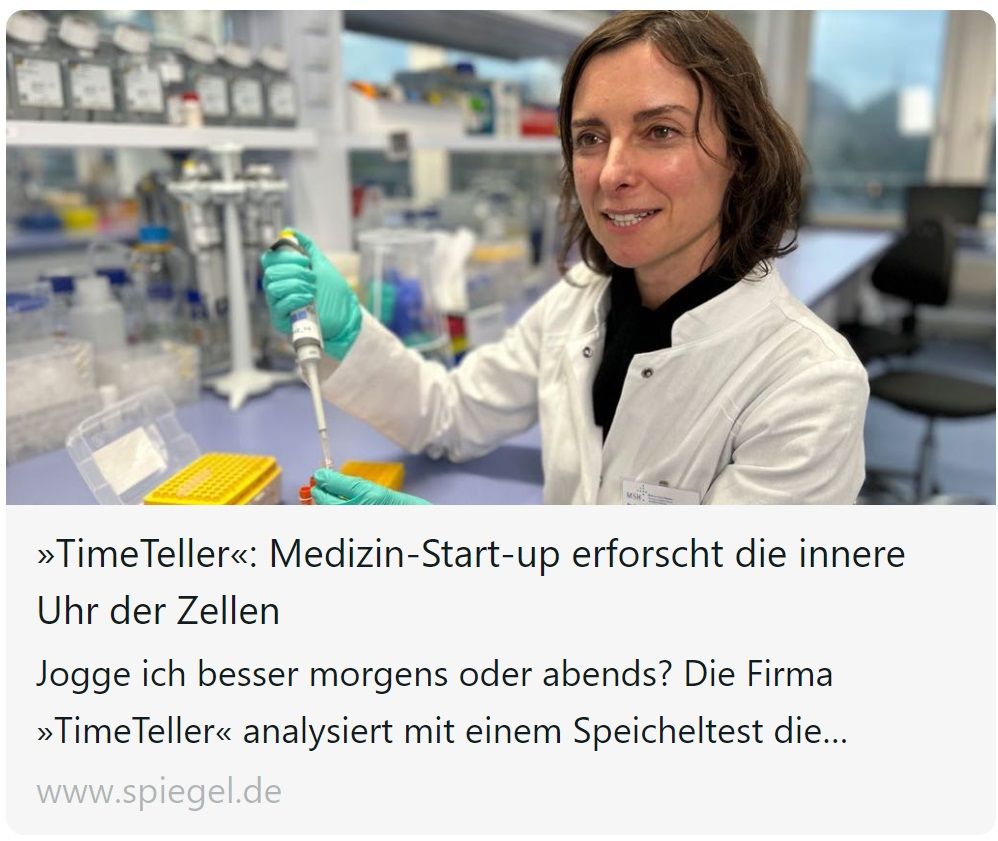 A few weeks ago DER SPIEGEL visited the research group of Angela Relógio at the MSH Medical School Hamburg to find out more about the circadian clock (our internal 24 h clock). The result was an exciting short documentary where you can learn more about our research, TimeTeller, and some of our projects, including an ongoing study on pediatric oncology with Prof. Dr. Angelika Eggert, director of the Clinic for Pediatric Oncology and Hematology at the Charité - Universitätsmedizin Berlin.